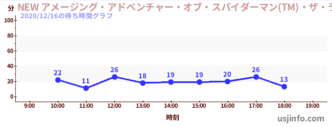 • NEW アメージング・アドベンチャー・オブ・スパイダーマン(TM)・ザ・ライド 4K3D$B$N(B2020年12月16日の待ち時間