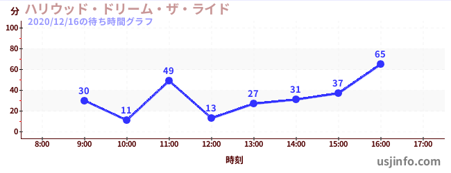 • ハリウッド・ドリーム・ザ・ライド$B$N(B2020年12月16日の待ち時間
