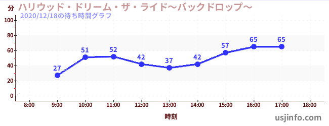 • ハリウッド・ドリーム・ザ・ライド〜バックドロップ〜$B$N(B2020年12月18日の待ち時間
