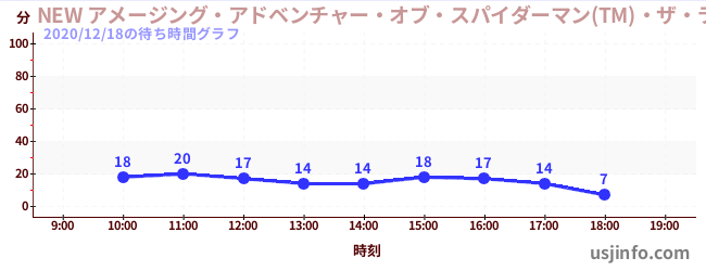 • NEW アメージング・アドベンチャー・オブ・スパイダーマン(TM)・ザ・ライド 4K3D$B$N(B2020年12月18日の待ち時間
