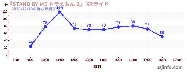 • 『STAND BY ME ドラえもん 2』 XRライド$B$N(B2020年12月18日の待ち時間