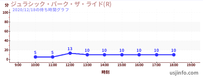 • ジュラシック・パーク・ザ・ライド(R)$B$N(B2020年12月18日の待ち時間