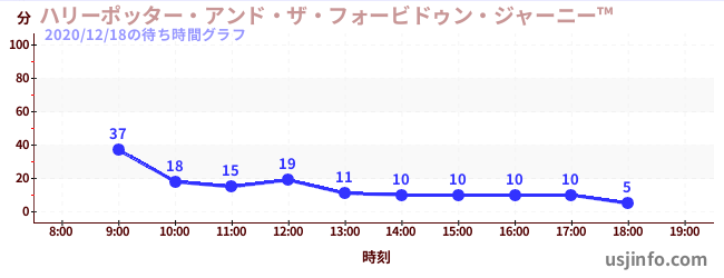 • ハリーポッター・アンド・ザ・フォービドゥン・ジャーニー™$B$N(B2020年12月18日の待ち時間