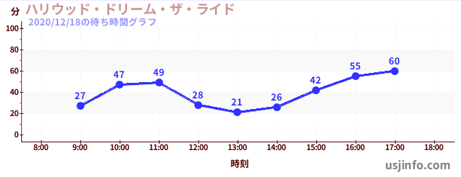 • ハリウッド・ドリーム・ザ・ライド$B$N(B2020年12月18日の待ち時間
