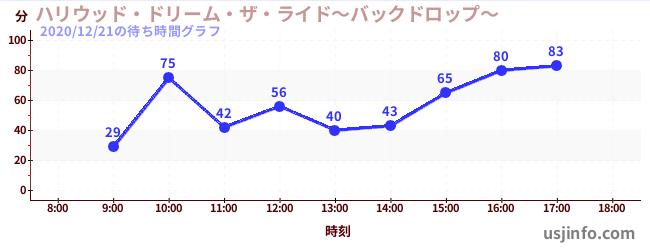 • ハリウッド・ドリーム・ザ・ライド〜バックドロップ〜$B$N(B2020年12月21日の待ち時間