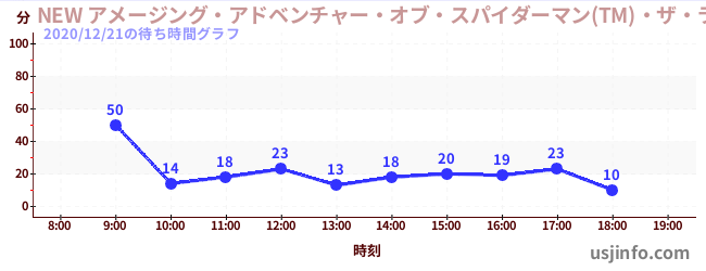 • NEW アメージング・アドベンチャー・オブ・スパイダーマン(TM)・ザ・ライド 4K3D$B$N(B2020年12月21日の待ち時間