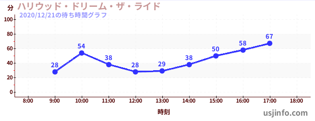 • ハリウッド・ドリーム・ザ・ライド$B$N(B2020年12月21日の待ち時間