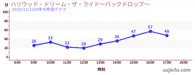 • ハリウッド・ドリーム・ザ・ライド〜バックドロップ〜$B$N(B2020年12月23日の待ち時間