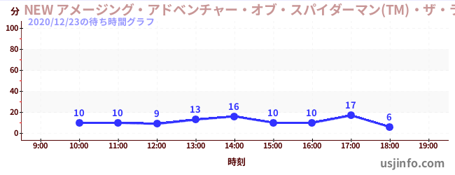 • NEW アメージング・アドベンチャー・オブ・スパイダーマン(TM)・ザ・ライド 4K3D$B$N(B2020年12月23日の待ち時間