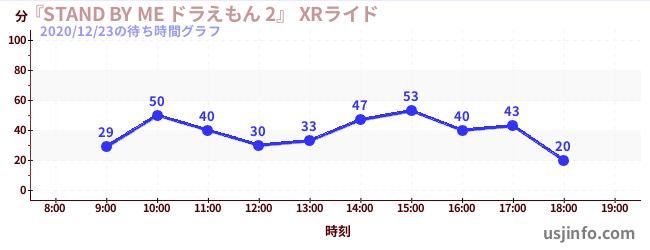 • 『STAND BY ME ドラえもん 2』 XRライド$B$N(B2020年12月23日の待ち時間