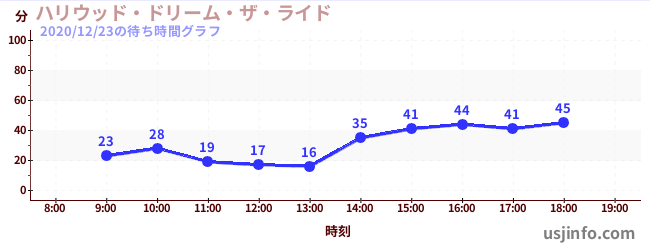 • ハリウッド・ドリーム・ザ・ライド$B$N(B2020年12月23日の待ち時間