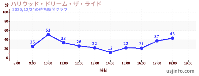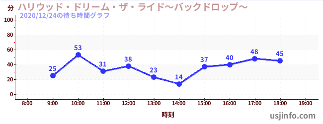 • ハリウッド・ドリーム・ザ・ライド〜バックドロップ〜$B$N(B2020年12月24日の待ち時間