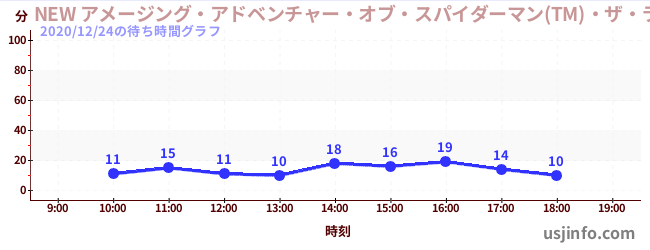 • NEW アメージング・アドベンチャー・オブ・スパイダーマン(TM)・ザ・ライド 4K3D$B$N(B2020年12月24日の待ち時間