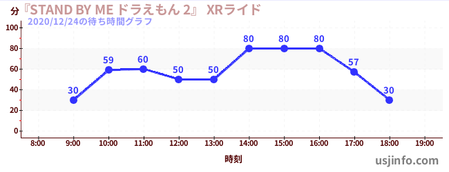 • 『STAND BY ME ドラえもん 2』 XRライド$B$N(B2020年12月24日の待ち時間