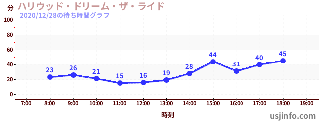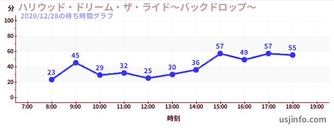 • ハリウッド・ドリーム・ザ・ライド〜バックドロップ〜$B$N(B2020年12月28日の待ち時間