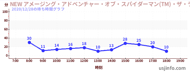 • NEW アメージング・アドベンチャー・オブ・スパイダーマン(TM)・ザ・ライド 4K3D$B$N(B2020年12月28日の待ち時間