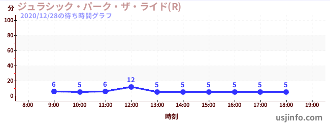 • ジュラシック・パーク・ザ・ライド(R)$B$N(B2020年12月28日の待ち時間