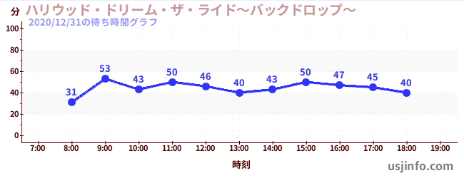 • ハリウッド・ドリーム・ザ・ライド〜バックドロップ〜$B$N(B2020年12月31日の待ち時間