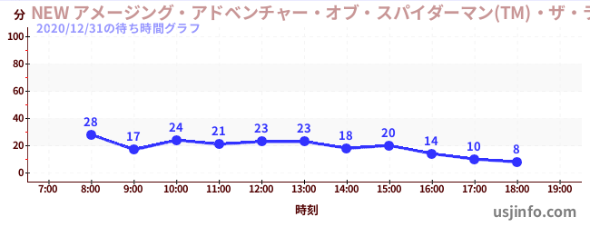 • NEW アメージング・アドベンチャー・オブ・スパイダーマン(TM)・ザ・ライド 4K3D$B$N(B2020年12月31日の待ち時間