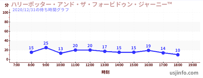 • ハリーポッター・アンド・ザ・フォービドゥン・ジャーニー™$B$N(B2020年12月31日の待ち時間