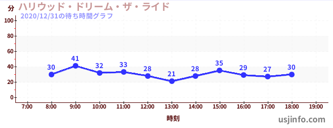 • ハリウッド・ドリーム・ザ・ライド$B$N(B2020年12月31日の待ち時間