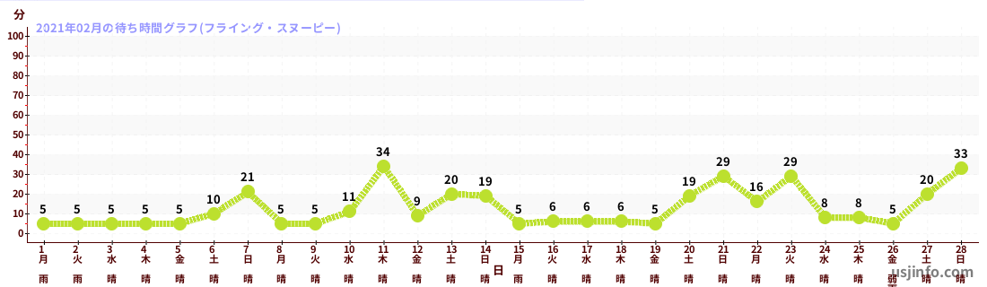 • フライング・スヌーピー$B$N(B2021年02月01日のの一日平均待ち時間