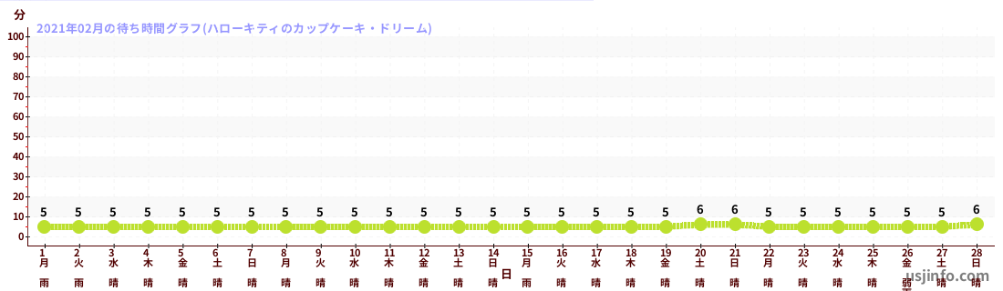 • ハローキティのカップケーキ・ドリーム$B$N(B2021年02月01日のの一日平均待ち時間