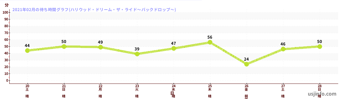 • ハリウッド・ドリーム・ザ・ライド〜バックドロップ〜$B$N(B2021年02月01日のの一日平均待ち時間