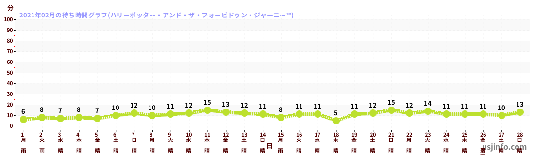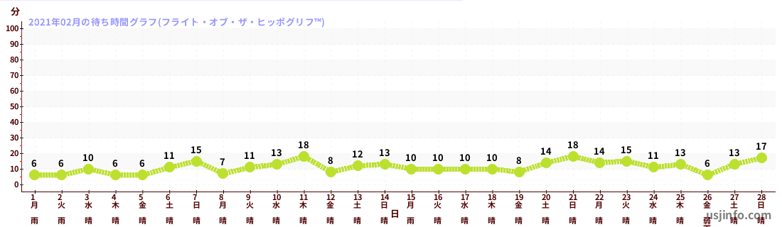 • フライト・オブ・ザ・ヒッポグリフ™$B$N(B2021年02月01日のの一日平均待ち時間