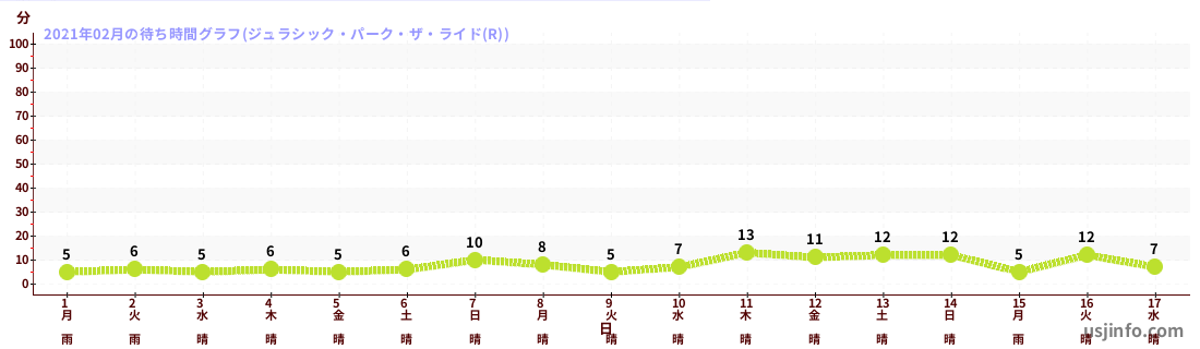 • ジョーズ(R)$B$N(B2021年02月01日のの一日平均待ち時間