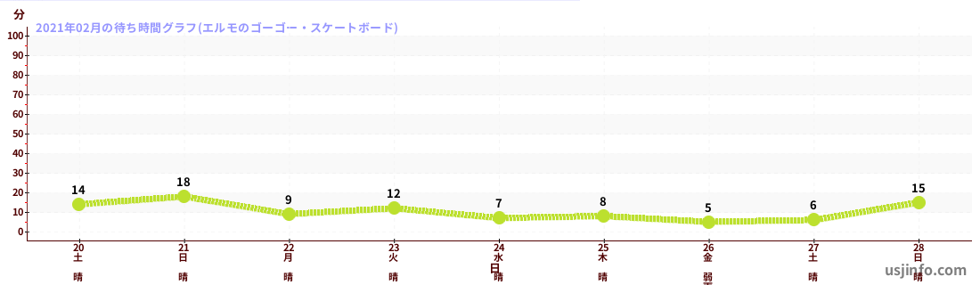 • エルモのゴーゴー・スケートボード$B$N(B2021年02月01日のの一日平均待ち時間