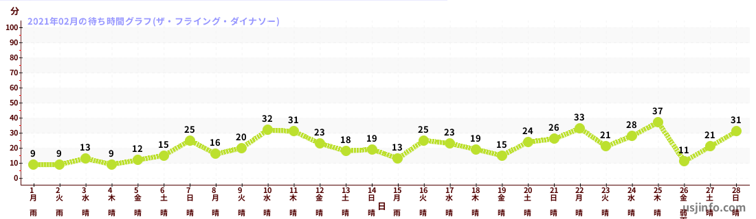 • ザ・フライング・ダイナソー$B$N(B2021年02月01日のの一日平均待ち時間