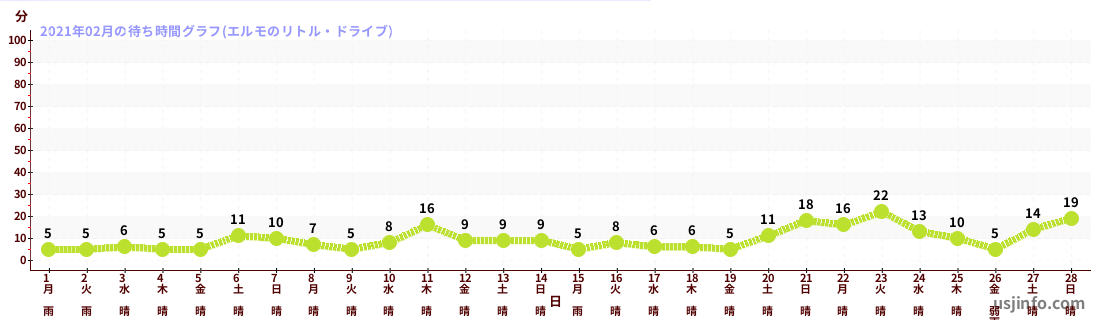 • エルモのリトル・ドライブ$B$N(B2021年02月01日のの一日平均待ち時間