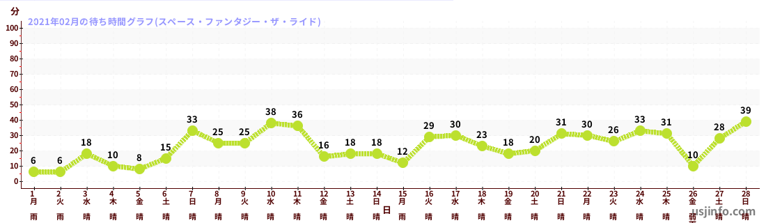 • スペース・ファンタジー・ザ・ライド$B$N(B2021年02月01日のの一日平均待ち時間
