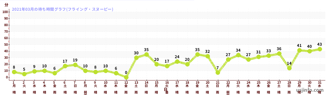 • フライング・スヌーピー$B$N(B2021年03月01日のの一日平均待ち時間