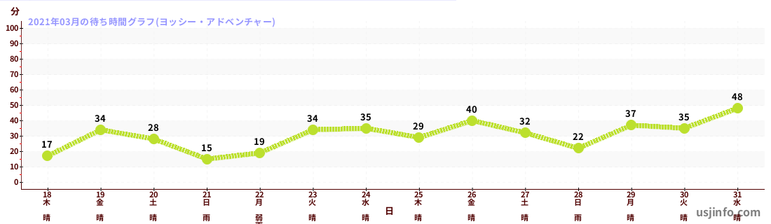• ヨッシー・アドベンチャー$B$N(B2021年03月01日のの一日平均待ち時間