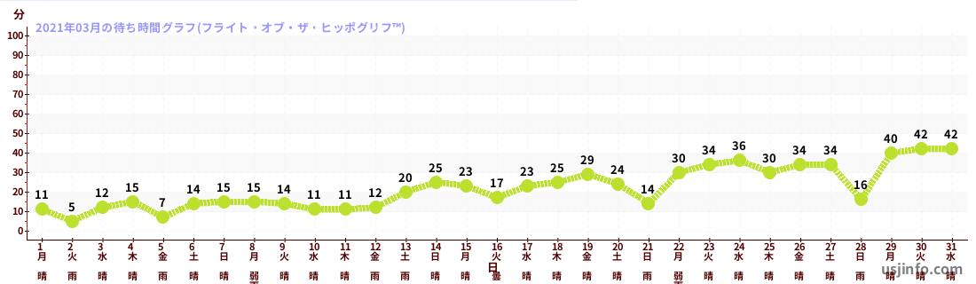 • フライト・オブ・ザ・ヒッポグリフ™$B$N(B2021年03月01日のの一日平均待ち時間