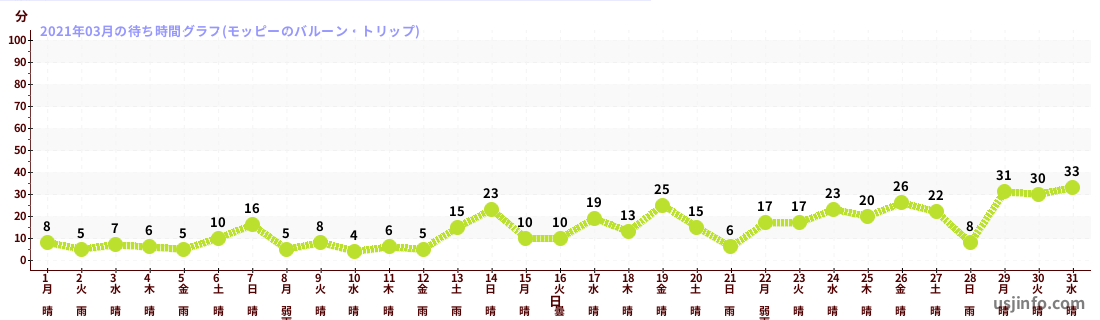 • モッピーのバルーン・トリップ$B$N(B2021年03月01日のの一日平均待ち時間