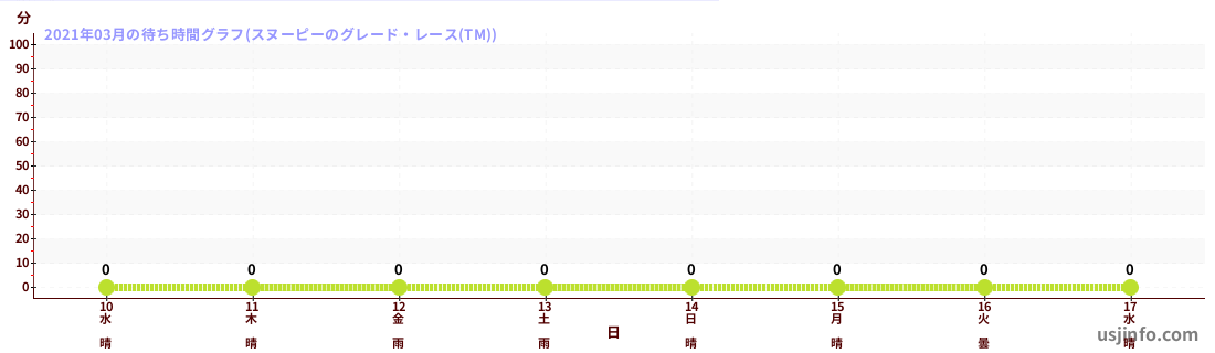 • スヌーピーのグレード・レース(TM)$B$N(B2021年03月01日のの一日平均待ち時間