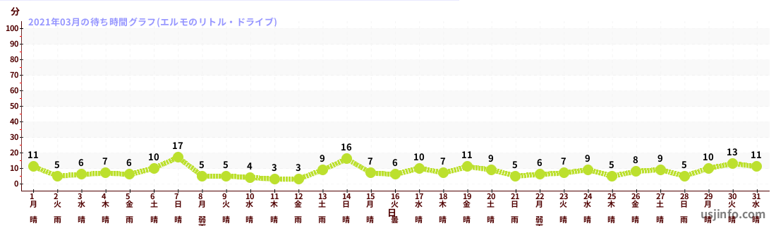 • エルモのリトル・ドライブ$B$N(B2021年03月01日のの一日平均待ち時間