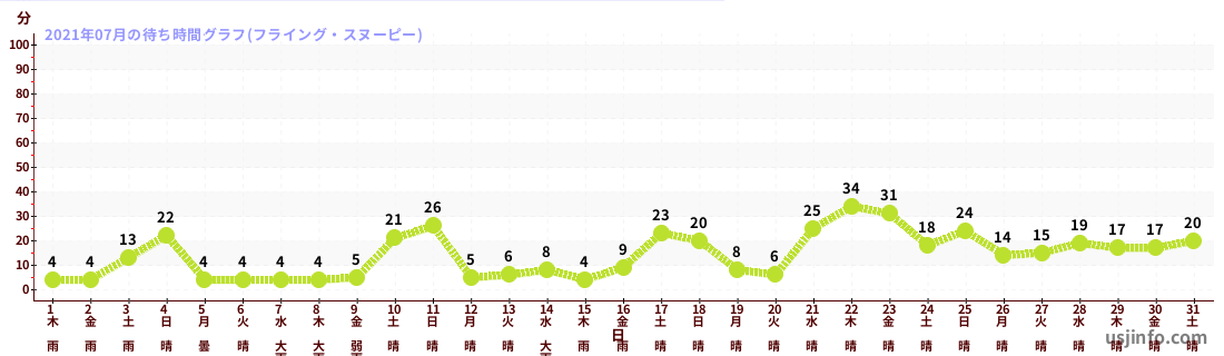 • フライング・スヌーピー$B$N(B2021年07月01日のの一日平均待ち時間
