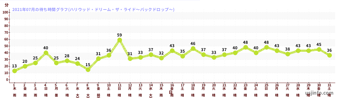 • ハリウッド・ドリーム・ザ・ライド〜バックドロップ〜$B$N(B2021年07月01日のの一日平均待ち時間