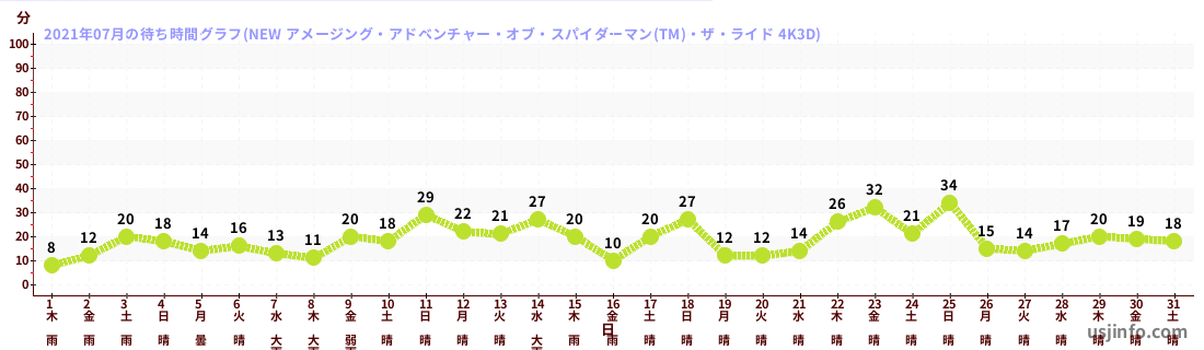 • NEW アメージング・アドベンチャー・オブ・スパイダーマン(TM)・ザ・ライド 4K3D$B$N(B2021年07月01日のの一日平均待ち時間