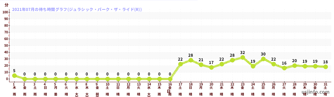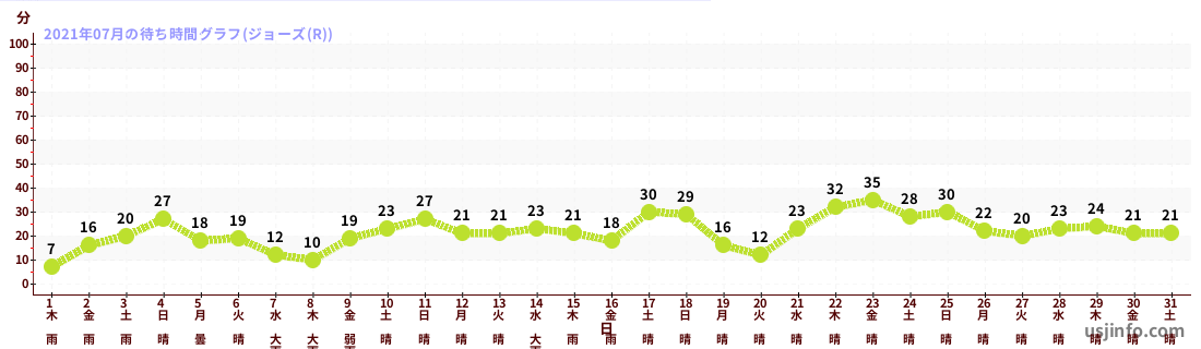 • ジョーズ(R)$B$N(B2021年07月01日のの一日平均待ち時間