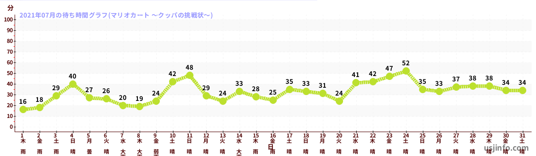• マリオカート ~クッパの挑戦状~$B$N(B2021年07月01日のの一日平均待ち時間