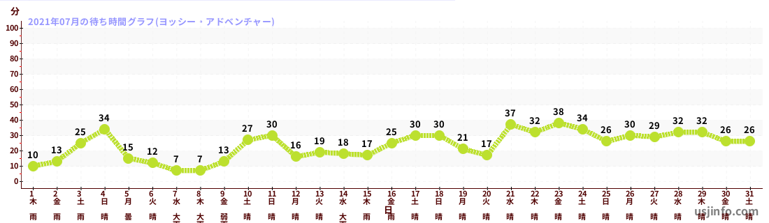 • ヨッシー・アドベンチャー$B$N(B2021年07月01日のの一日平均待ち時間