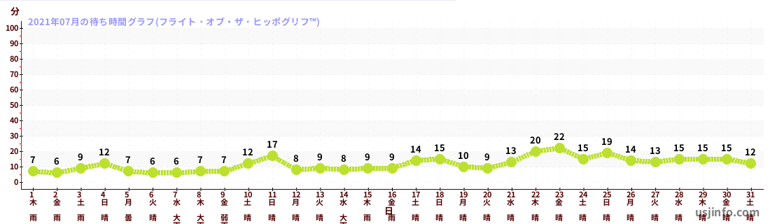 • フライト・オブ・ザ・ヒッポグリフ™$B$N(B2021年07月01日のの一日平均待ち時間