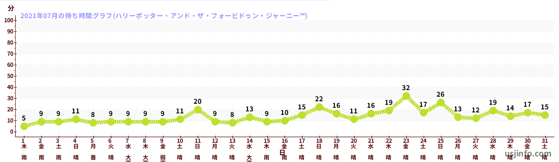 • ハリーポッター・アンド・ザ・フォービドゥン・ジャーニー™$B$N(B2021年07月01日のの一日平均待ち時間