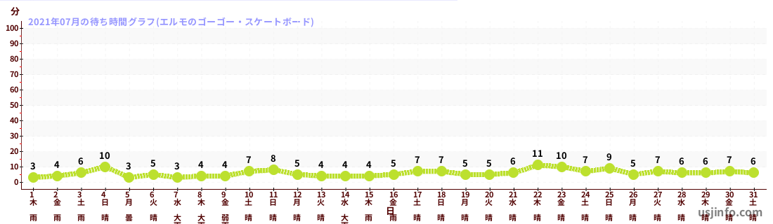 • エルモのゴーゴー・スケートボード$B$N(B2021年07月01日のの一日平均待ち時間