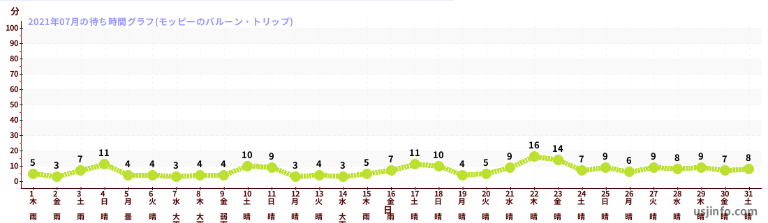 • モッピーのバルーン・トリップ$B$N(B2021年07月01日のの一日平均待ち時間